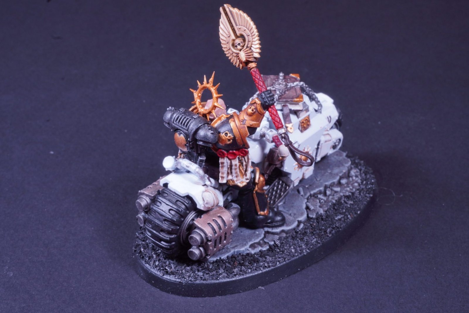 SM-White Scars-Outrider Bike Squad / White Scars / By admin Space Marines – White Scars Chapter – Outrider Bike Squad Outrider Bike Squad with Primaris Chaplain on Bike White Scars are the Space Marines chapter who excel at fast attack. They are known for their abilities on power motorcycles.