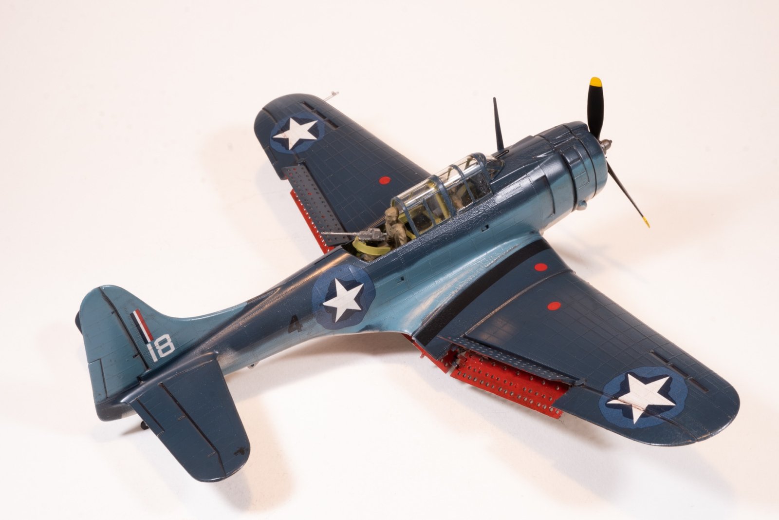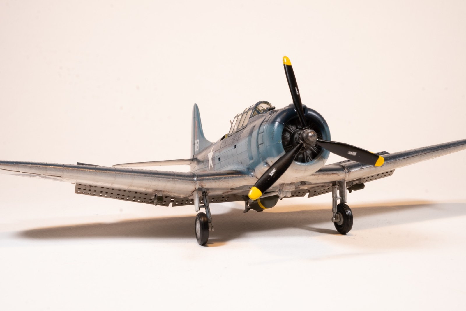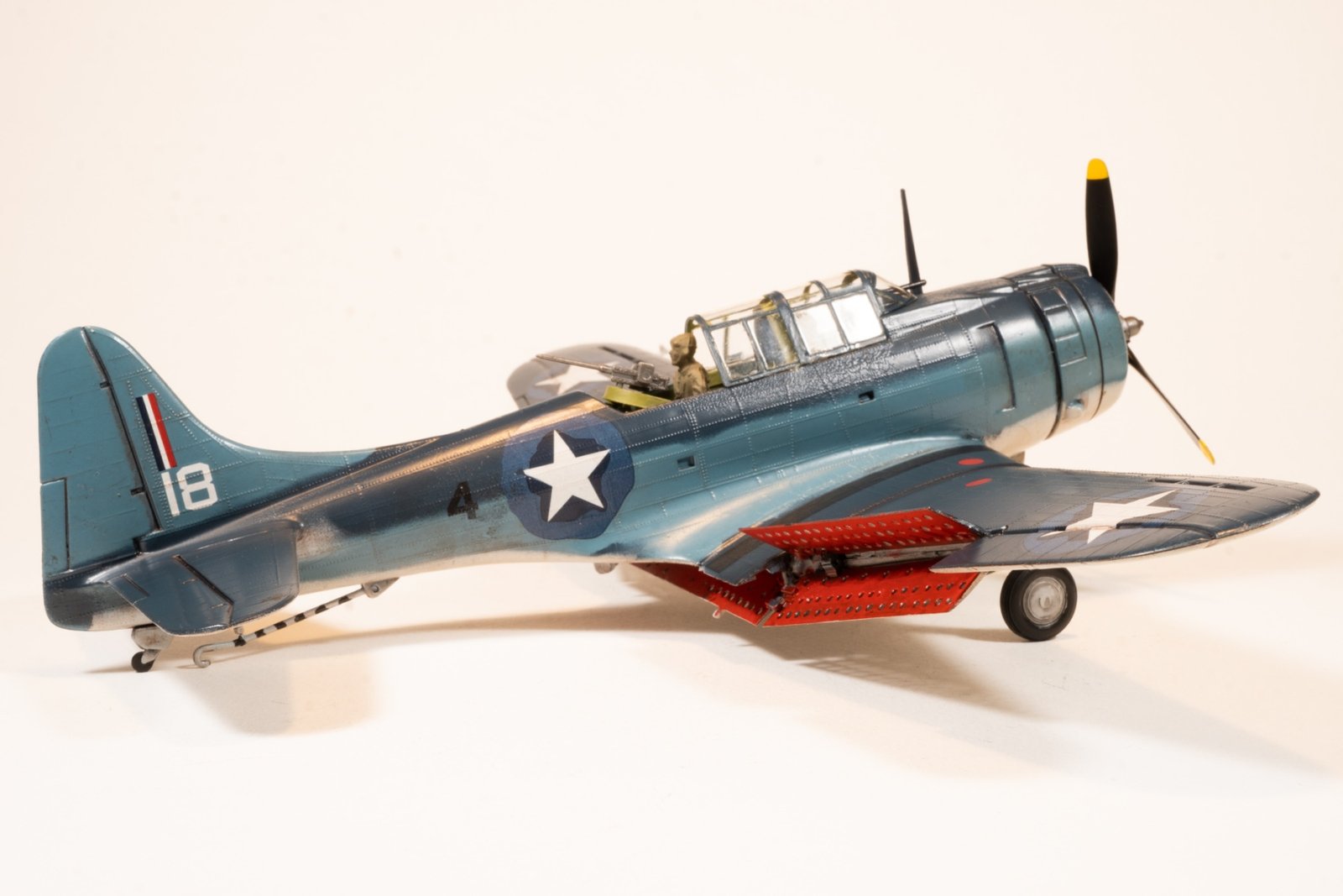 The Douglas SBD Dauntless is a World War II American naval scout plane and dive bomber that was manufactured by Douglas Aircraft from 1940 through 1944. The SBD (“Scout Bomber Douglas”) was the United States Navy’s main carrier-based scout/dive bomber from mid-1940 through mid-1944. The SBD was also flown by the United States Marine Corps, both from land air bases and aircraft carriers. The SBD is best remembered as the bomber that delivered the fatal blows to the Japanese carriers at the Battle of Midway in June 1942. The type earned its nickname “Slow But Deadly” (from its SBD initials) during this period.