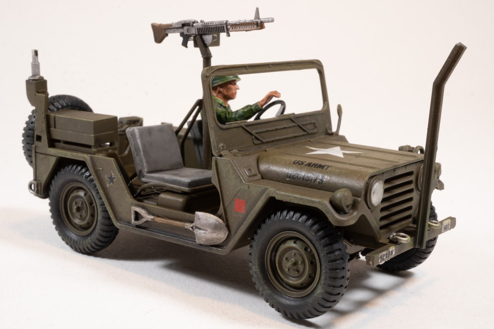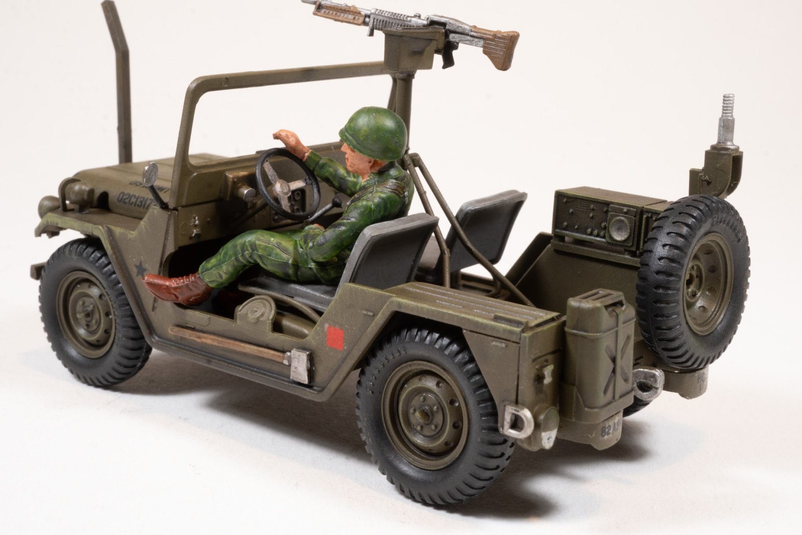 M151A2 (Mutt) Jeep – The A2 fielded a significantly revised rear suspension that greatly improved safety in fast cornering. The M151 now had Semi-trailing arm suspension. Many smaller upgrades including improved turn signals. The A2 can be identified by the large combination turn signal/blackout lights on the front fenders, which also had been modified to mount the larger lights, as opposed to earlier A1’s that had flat front fenders.