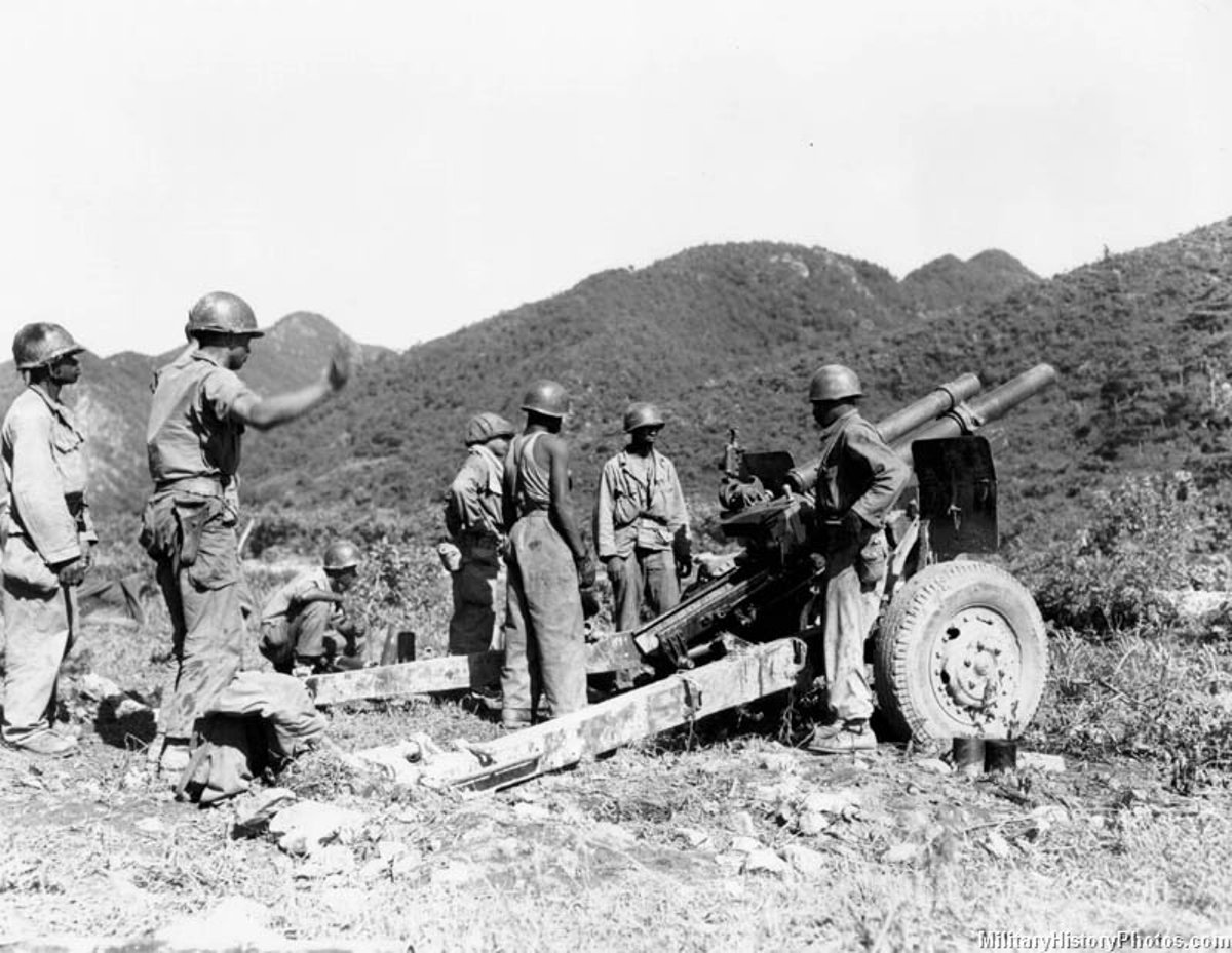 The M101A1 (previously designated Howitzer M2A2 on Carriage M2A2) howitzer is an artillery piece developed and used by the United States. It was the standard U.S. light field howitzer in World War II and saw action in both the European and Pacific theaters and during the Korean War. Entering production in 1941, it quickly gained a reputation for accuracy and a powerful punch. The M101A1 fires 105 mm high explosive (HE) semi-fixed ammunition and has a range of 12,330 yards, making it suitable for supporting infantry.