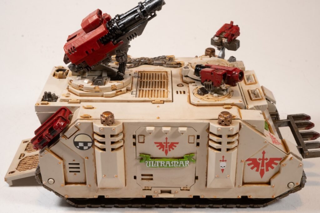 Off the Bench April 1, 2025Dark Angels – Deathwing motif on a Razorback. Seen that Razorbacks have been used in battle within Deathwing.Armament chosen based on best appearance.